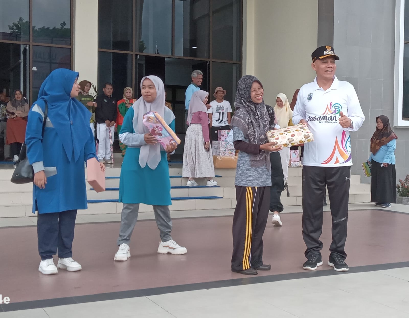 Selsesai upacara bendera, Sabar AS memberikan kejutan dengan memberikan hadiah berupa tas sekolah kepada siswa siswi berprestasi dan siswa siswi yang istiqomah melaksanakan sholat subuh berjamaah serta tidak lupa Bupati juga memberikan hadiah kepada siswa yang menjadi marbot mesjit.