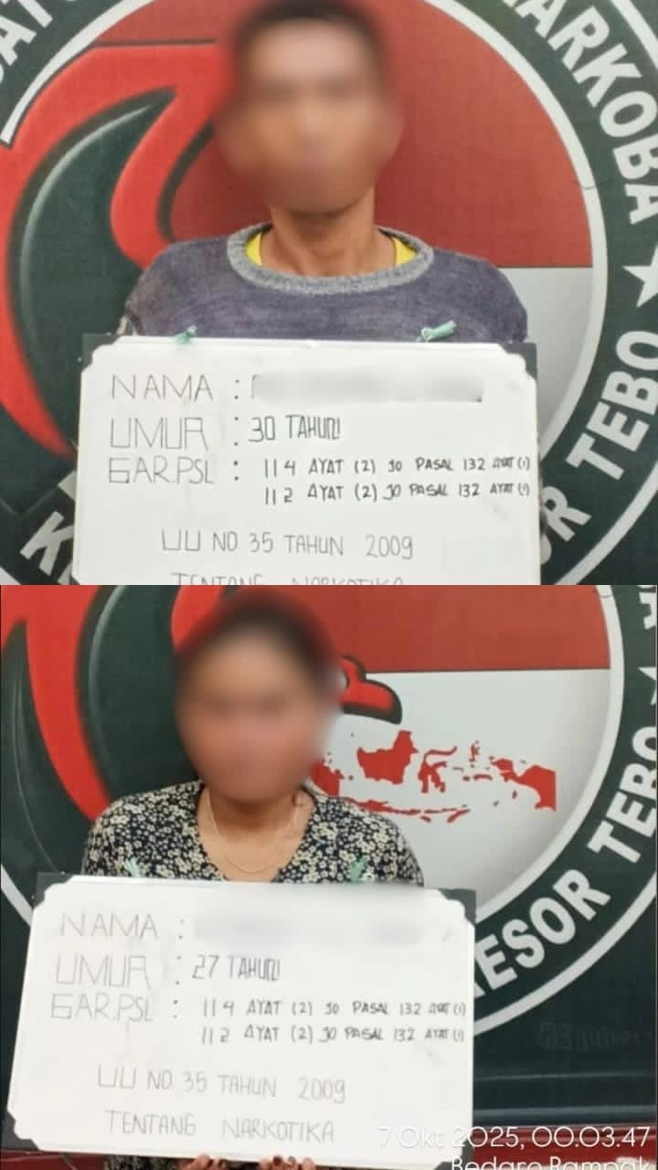 Kapolres Tebo AKBP Triyanto, S.I.K., S.H., M.H. melalui Plt. Kasi Humas Ipda Ardimal Hagia, S.E., M.E. menjelaskan, Penangkapan kedua pelaku berawal dari informasi masyarakat yang melaporkan adanya dugaan tindak pidana penyalahgunaan narkotika.