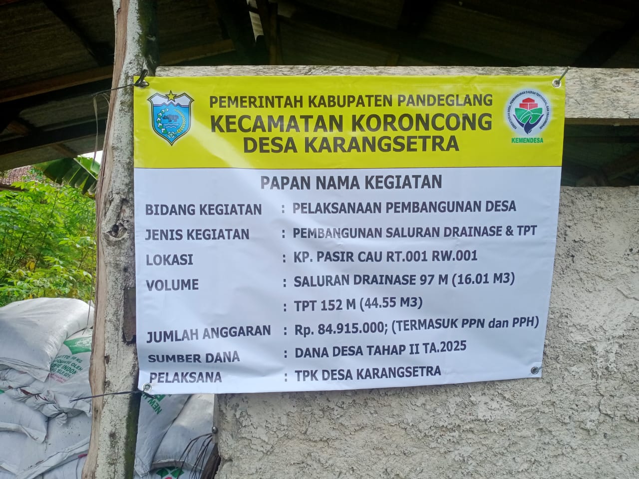 Globalberita.id – Pandeglang – Pemerintah Desa Karangsetra, Kabupaten Pandeglang, merealisasikan anggaran Dana Desa (DD) Tahap II tahun 2025 pada proyek pembangunan saluran drainase dan TPT di Kp.Jeungjing RT. 003 Rw. 002 dan kp.Pasir cau RT. 001 RW. 001 (Rabu,05 November 2025)
