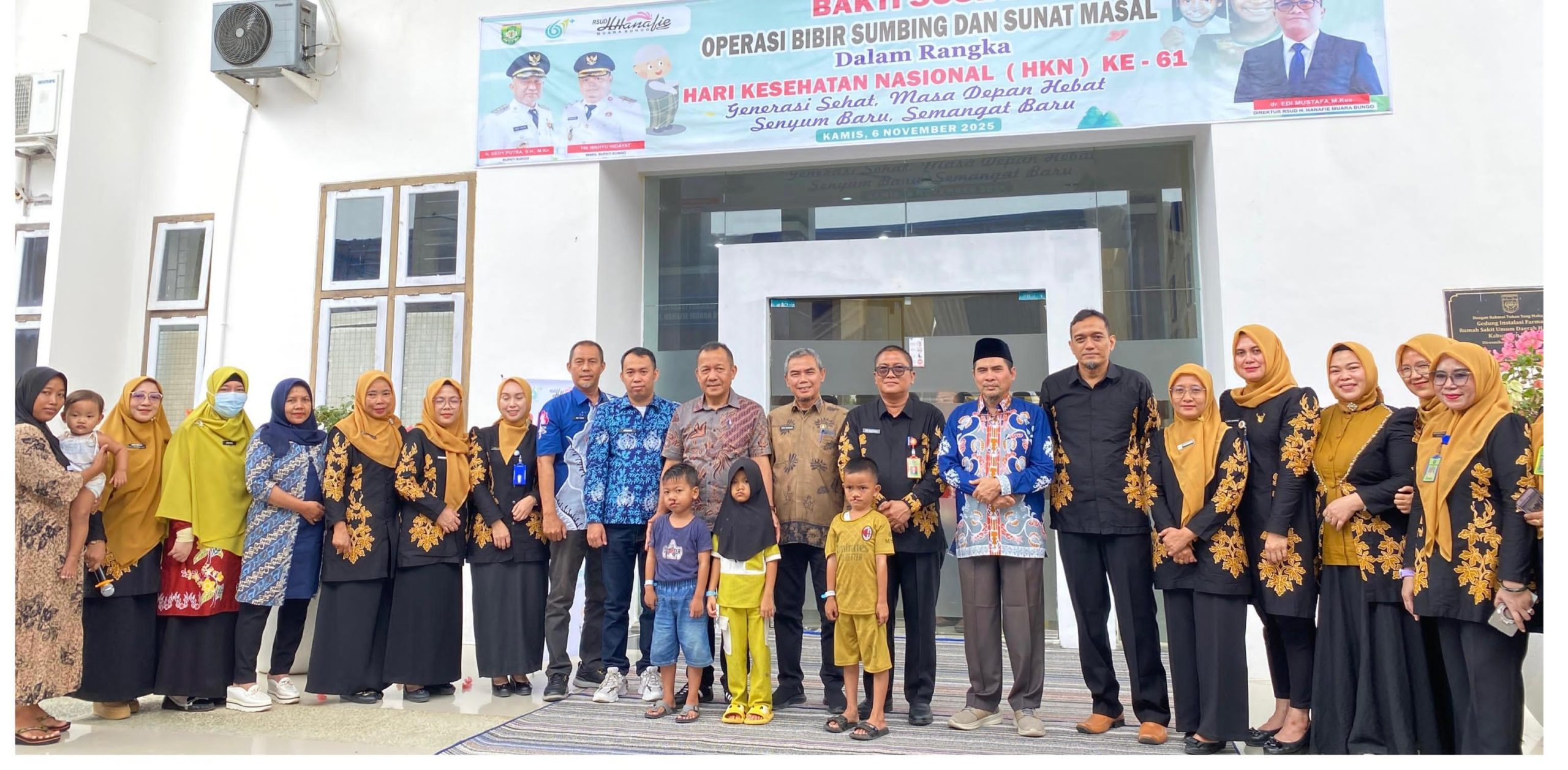 Globalberita.id – Bungo – Dalam rangka memperingati Hari Kesehatan Nasional (HKN) ke-61 dan hari jadi Asosiasi Rumah Sakit Daerah Seluruh Indonesia (Arsada) ke-25, RSUD H. Hanafie Muara Bungo menggelar operasi bibir sumbing dan lelangit sumbing secara gratis pada Kamis, 6 November 2025.