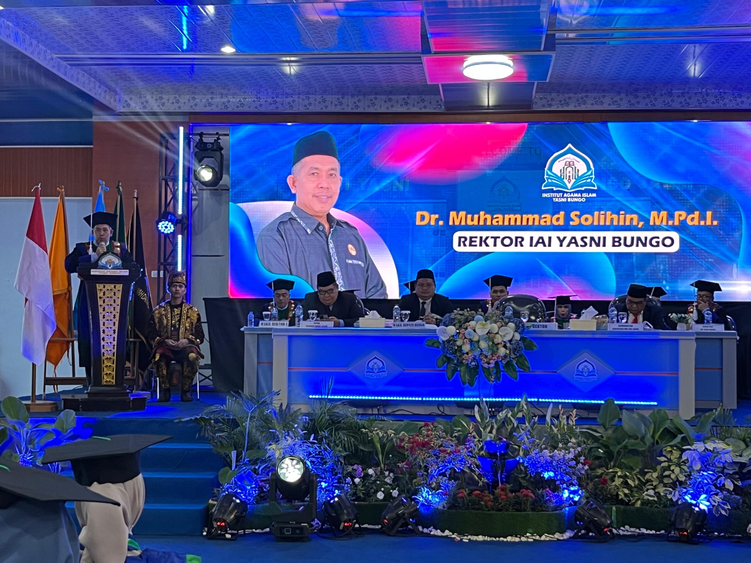 “Kampus IAI Yasni Muaro Bungo ini merupakan Salah satu kampus tertua dan terbesar di kabupaten Bungo, saat ini ada 7 program studi dan 3 fakultas yang ada di kampus IAI yasni Bungo dan tiap tahunnya jumlah mahasiswa kita semakin berkembang, tentu hal ini harus diiringi dengan kualitas dan pelayanan kampus, kita berharap kepada wisudawan bukan hanya bisa mencari kerja tapi juga menciptakan lapangan kerja, ” tutupnya.