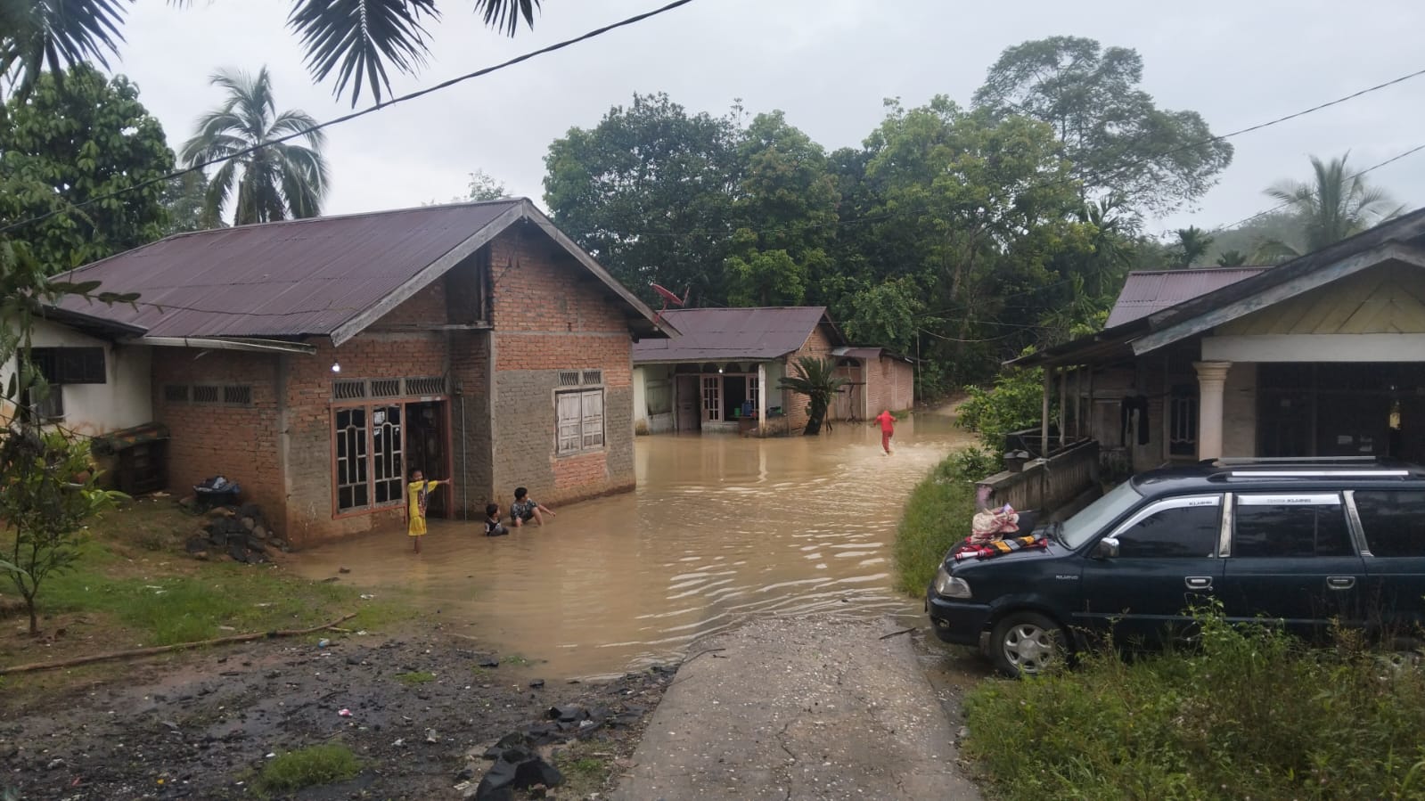 Globalberita.id – Bungo – Curah Hujan Di Kabupaten Bungo Cukup Tinggi yang mengakibatkan Sungai Hukum Naik Darastis Sehingga Menyebabkan Warga Di Tukum ll mengalami kebanjiran. Minggu, 27/12/2025